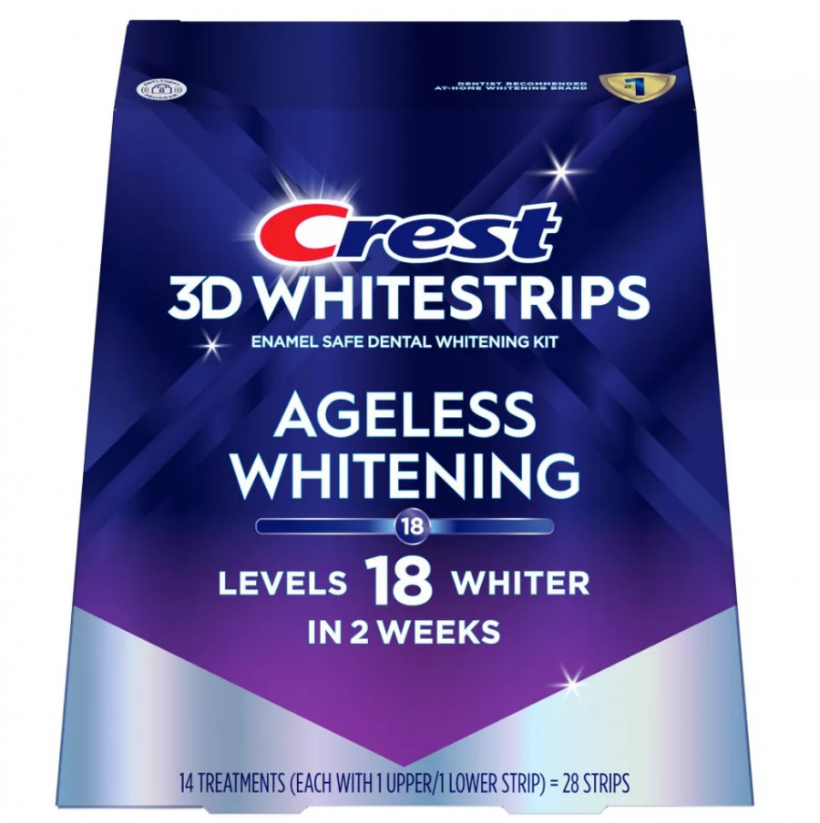Nové bělicí pásky Crest 3D Whitestrips AGELESS WHITENING dokážou vybělit zuby až o 18 odstínů (platí pro celé balení), a to už za dva týdny používání. Bílé zuby v pohodlí domova díky léty prověřené americké značce Crest.