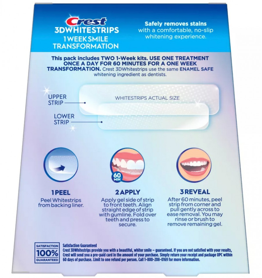Pásky Crest využívají stejných látek, kterých používají zubaři při ambulantním bělení zubů. Jejich používání nepředstavuje absolutně žádné riziko. Bělení se navíc děje jednoduše a v pohodlí vašeho domova. Vybělení zubů těmito bělícími pásky je stejné jako vybělení zubů laserem za 12 tisíc korun u zubaře. Pásky Crest jsou klinicky testovány a nepoškozují zubní sklovinu. Značka Crest je v USA absolutní jedničkou v oblasti bělení zubů. Je doporučována Americkou zubní asociací i mnohými dentisty a stomatology.