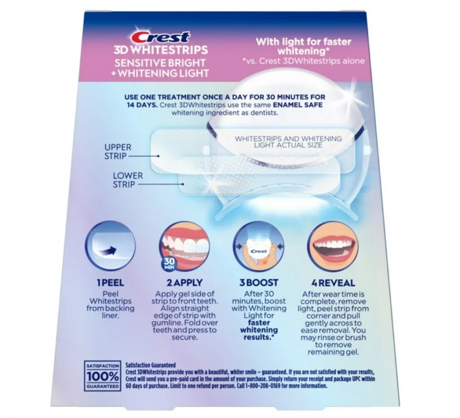 - bělení zubů pásky Crest není vhodné pro lidi do 18 let a lidi, kteří trpí zánětem dásní, vysokou kazivostí zubů, velmi odhalenými citlivými zubními krčky nebo jinými zdravotními problémy. V první řadě je nutné mít zdravý chrup, až potom bílé zuby.